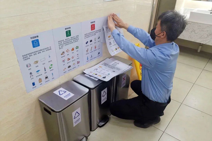 公司在持续开展宣传的同时,不断更新垃圾分类设备设施,优化桶站环境,及时更换已损坏的垃圾桶,确保桶站无异味,定期检查桶站情况,做到无冒满、无撒漏。公司还针对垃圾投放量较大的点位,及时增加分类垃圾桶,并在周边加装监控设备,做好垃圾分类技防工作。