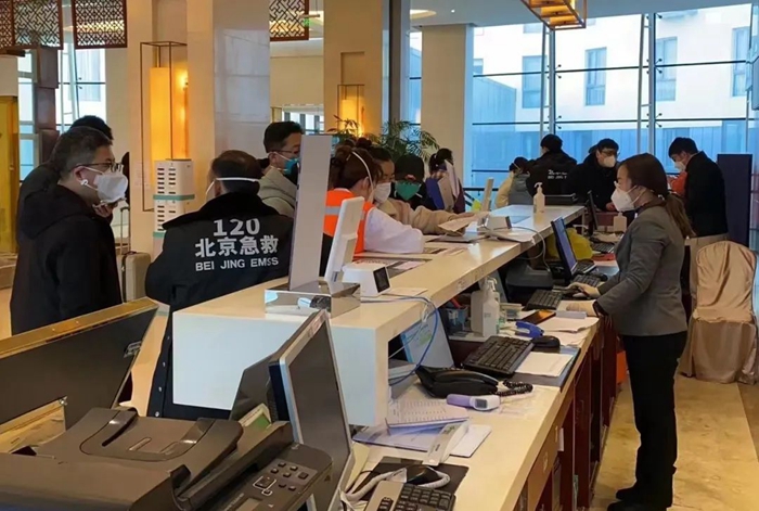 华腾美居酒店再次出征,被朝阳区确定为泛CBD区域“120”医护队所在地。酒店地处CBD区域,自身具有优质的软硬件环境,更为重要的是,其多次出色完成政府交办的疫情隔离服务保障任务,得到属地政府高度认可。此次任务酒店承担起40余辆120救护车停泊和500余名医护人员接待服务。