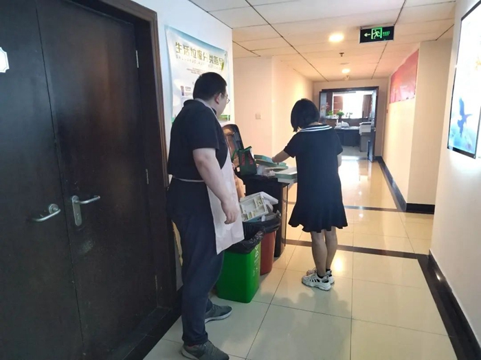 为了确保垃圾分类工作有效开展,化研院在办公区域配备了足够的垃圾分类设施并合理分布,并在周边设置分类标识,指导员工精准投放垃圾。同时也定时进行清洁和检查,保证垃圾分类设施不缺失、不损坏、外观整洁,做到周围没有卫生死角。