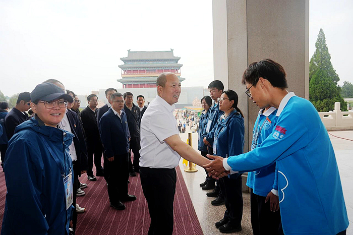 5月23日,半岛bandao化工集团党委常委、副总经理韩宝海一行来到毛主席纪念堂,看望慰问开展志愿服务的技师学院青年志愿者。