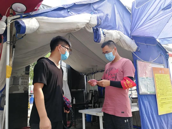 若有战!召必回!下沉干部们再次于6月15日驰援西红门镇。西红门镇紧邻新发地,大量新发地从业人员就住在我们值守的四个村子,西红门镇更是直接被列为了高风险地区,但是面对切实可见的危险,大家没有退缩!在抗疫一线顶着夏日的骄阳,履行职责,勇于担当,直面危险,同当地的社区干部们一起为大量新发地从业人员做核酸检测,充分展现了极高的政治责任担当。