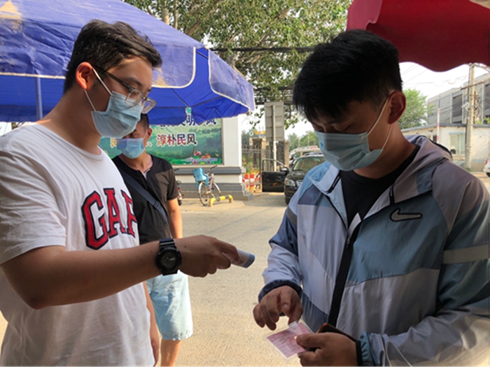 再次回到熟悉的岗位,再次见到熟悉的面孔,再次听到熟悉的声音,我更加明确自己肩负的责任与使命,没有什么比健康更重要的了,为了大家的健康,我要实实在在做好村里疫情防控工作。根据村委会要求,做过核酸检测的人员需要居家观察14天,在此期间,我们需要每天上、下午巡村,一个人负责测量体温、一个人负责记录、一个人负责发放“承诺书”等文件并收回、一个人负责收出入证,村委会人员负责解释并说明。炎炎夏日,每天顶着大太阳在村里忙活,眼睛因为流汗过多经常浮肿,回家后全身酸痛,想想自己的责任与使命,第二天依旧精神饱满的上岗。在我们齐心协力下,振亚庄至今无病例,相信我们采取的措施将有效控制并最终战胜疫情!