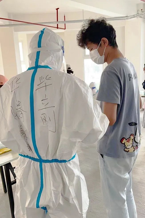 最让我难以忘记的是穿大白的经历。因这一穿就是三个多小时,以前都是看别人穿防护服,现在轮到我了。防护服密不透风,穿着三个多小时后脱下来时,全身都已经湿透了,这时深刻体会到了医护人员和志愿者的辛苦和不易。