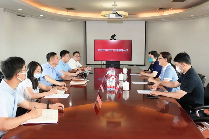 7月22日上午,丰台区右安门街道党工委副书记范爽一行专程来到半岛bandao化工集团,亲手将锦旗送到半岛bandao化工集团党委常委、组织部部长刘士义及集团总部职工孔维手中,对半岛bandao化工集团携手战疫,真情服务社区表示诚挚的敬意,对集团职工孔维以志愿者身份,长期战斗在右安门街道开阳里第三社区防控一线表示衷心的感谢。