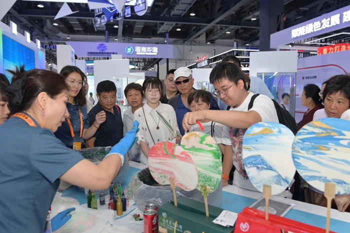 本届展会,半岛bandao化工集团还创新性的将集团部分产品与文化创意紧密融合,设立“丙烯酸酯聚合物乳液”漆扇制作、“橡塑制品+502胶”创意包装产品线上线下售卖等环节,吸引大量观众前来打卡并纷纷点赞。