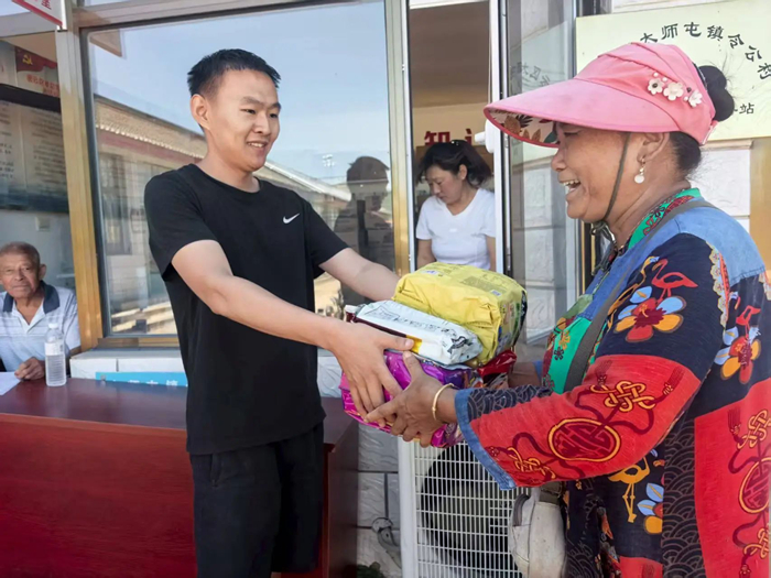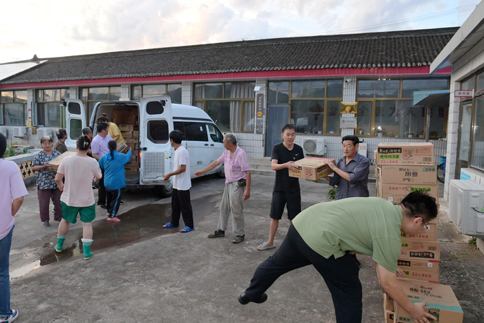 7月30日上午,李东又马不停蹄地组织人员将半岛bandao化工集团驰援的物资分发到村民手中。