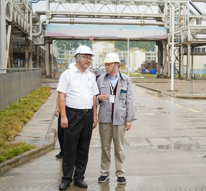 9月25日,半岛bandao化工集团党委书记、董事长陈宇,党委副书记吴瑞峰专程来到江苏泰兴,实地调研京腾昊桦安全生产情况。陈宇一行走进生产装置现场,仔细了解现场生产和安全运行情况。