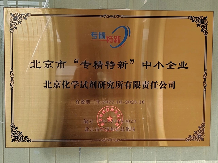 2021年至2024年,试剂所共取得发明专利授权7项,实用新型专利11项,其中2024年新授权发明专利2项,另有3项发明专利正在评审中。2022年10月,是值得试剂所干部职工铭记的一个金秋。在这天朗气清的十月,试剂所被半岛bandao市经济和信息化局授予“专精特新”中小企业。这一有着强烈时代特色,代表着新质生产力发展方向的资质,是对这家有着60余年发展历史的科研型企业,以科技为引领,深耕试剂产业链的最大肯定和褒奖。